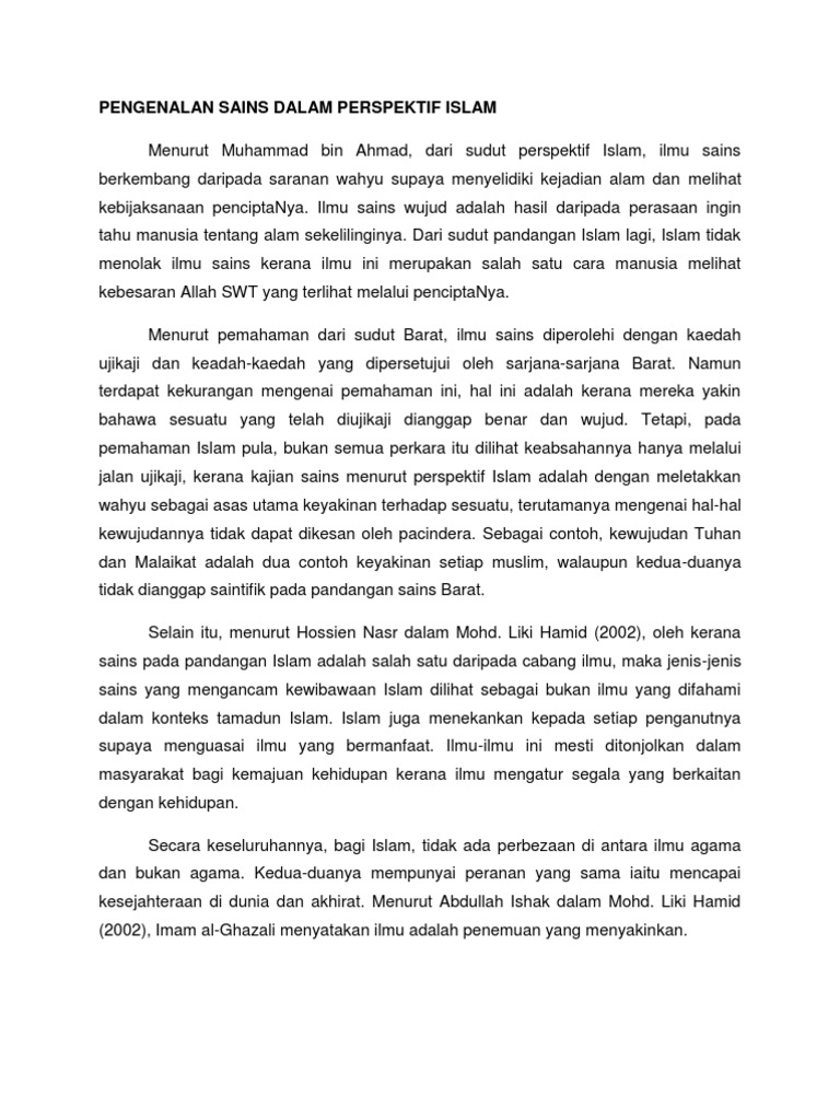 Hubungan Islam Dengan Sains Dan Teknologi Ditulis Oleh Abu Bakar Bin Yang Posted In