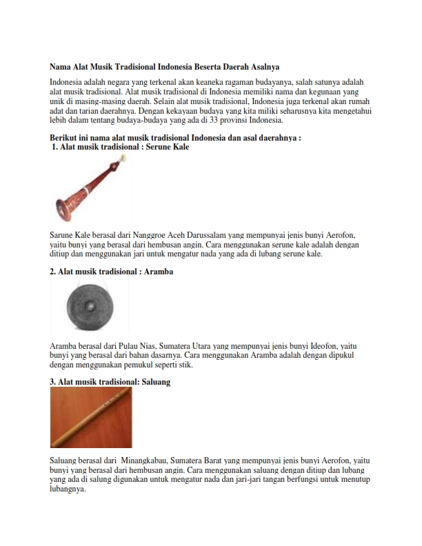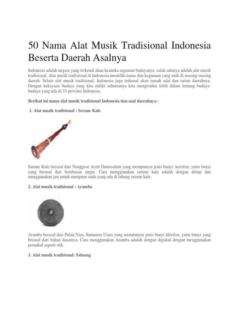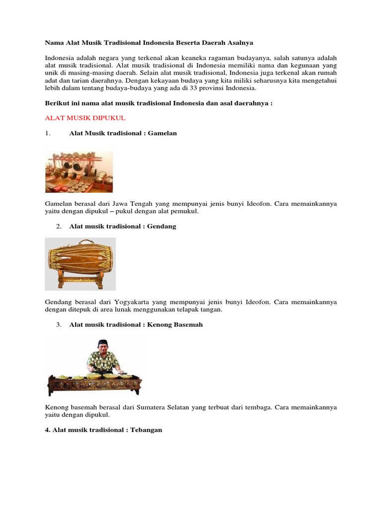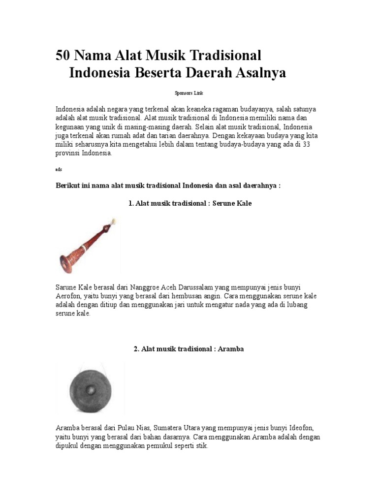 Alat Musik Tradisional Di Indonesia Beserta Nama Daerahnya Pdf Document