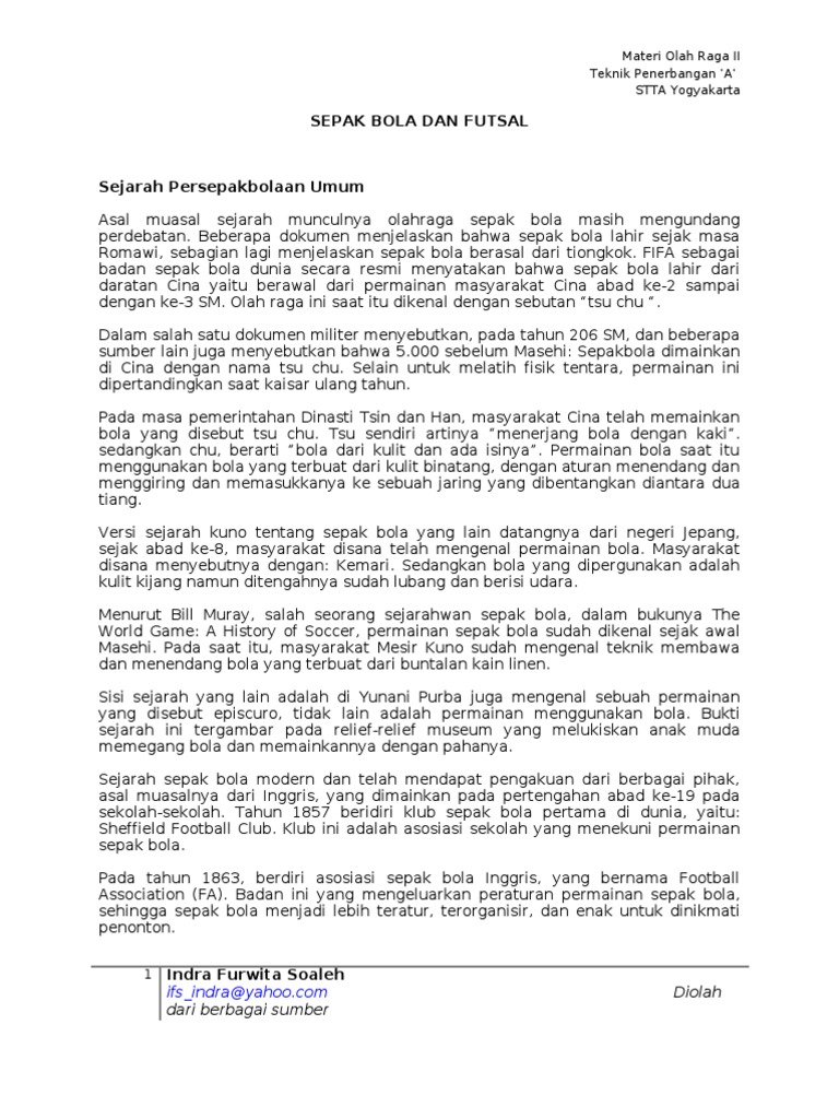 Asal Usul Sepak Bola Hingga Masuknya Sepak Bola Ke Indonesia Docx