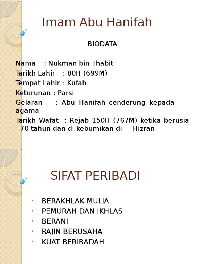 Imam Abu Hanifah R A Imam Abu Hanifah R A Riwayat Hidup Nama Nukman Bin Thabit Kelahiran 80h 699 M Di Kufah Gelaran Abu Hanifah Kerana Anaknya Bernama Ppt Download
