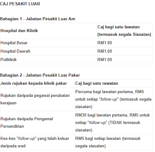 Caj Di Hospital Kerajaan Naik Harga Mulai Januari 2017