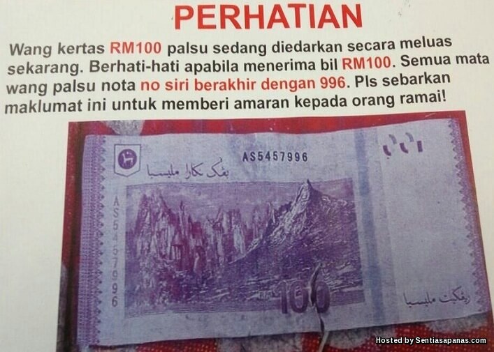 Mesej Wang Palsu Rm100 Nombor Siri 996 Tidak Benar Sentiasapanas