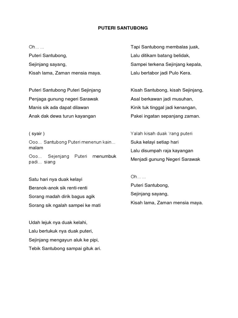 Lirik Lagu Puteri Santubong