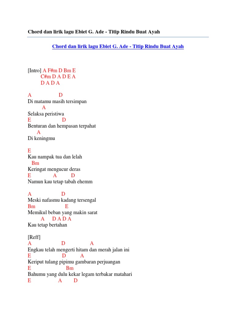 Lirik Lagu Dan Chord Gitar Titip Rindu Buat Ayah Ebiet G Ade Semua Halaman Sonora Id