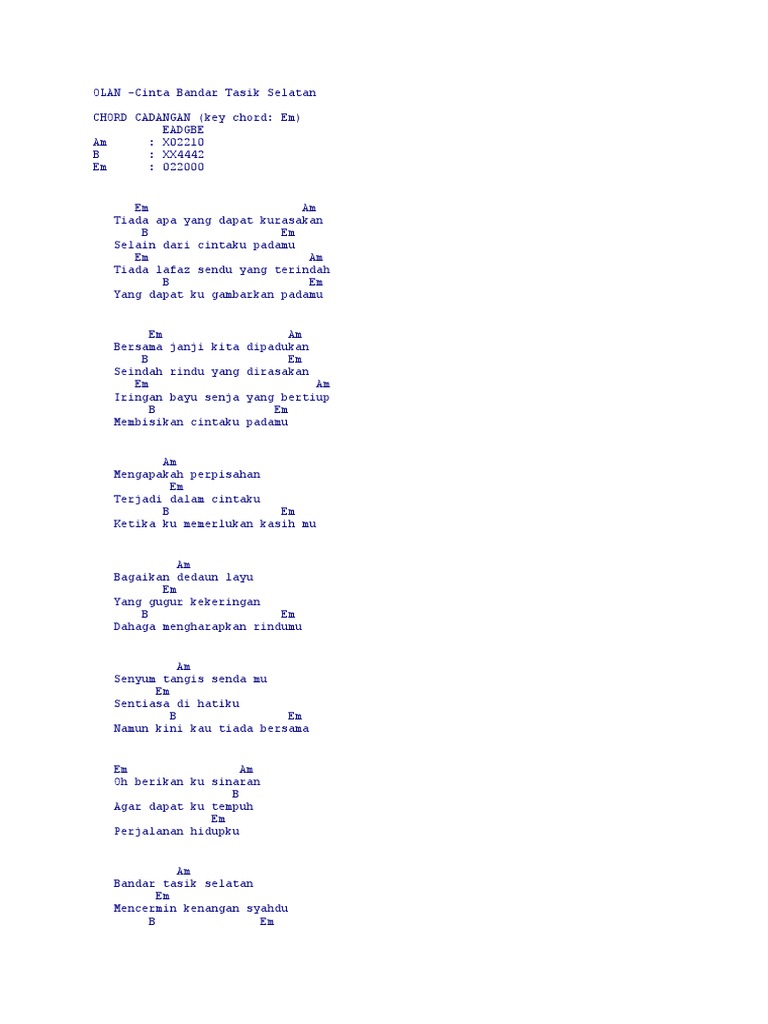 Cinta Bandar Tasik Selatan Olan Lirik Dan Chord