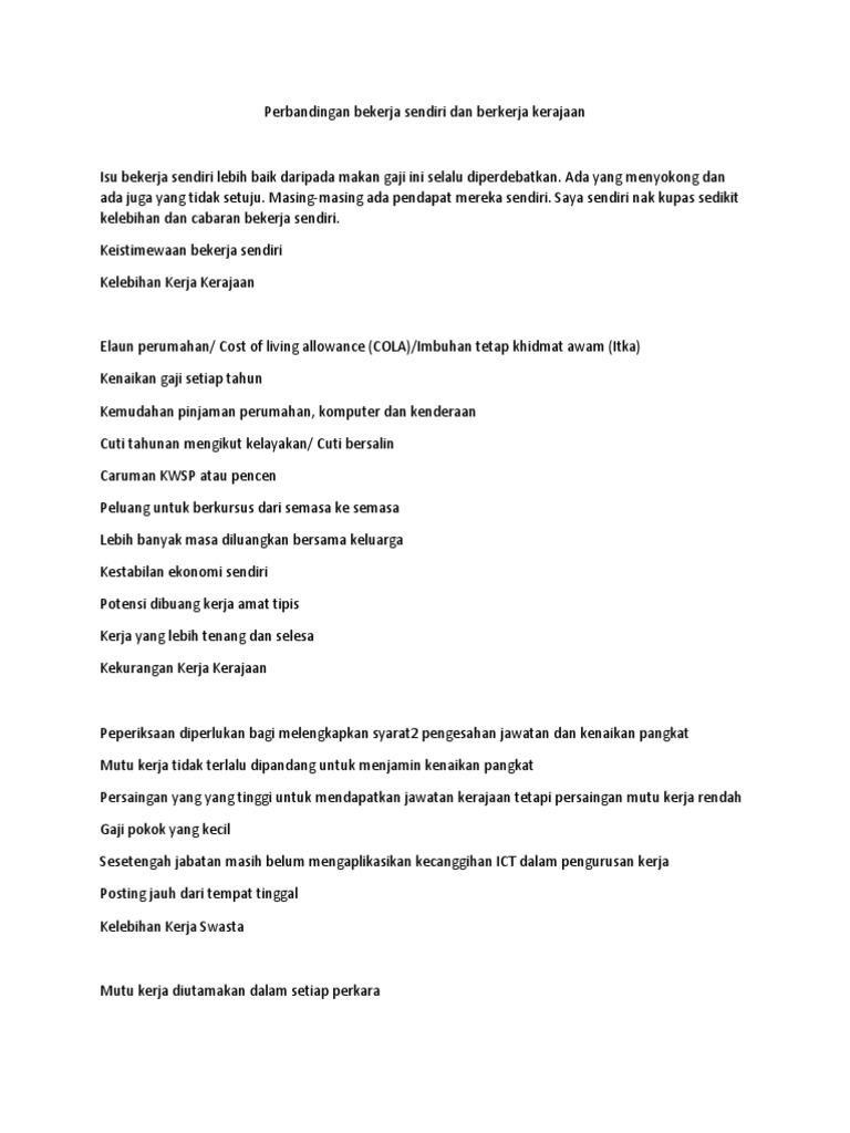 Perbandingan Bekerja Sendiri Dan Berkerja Kerajaan