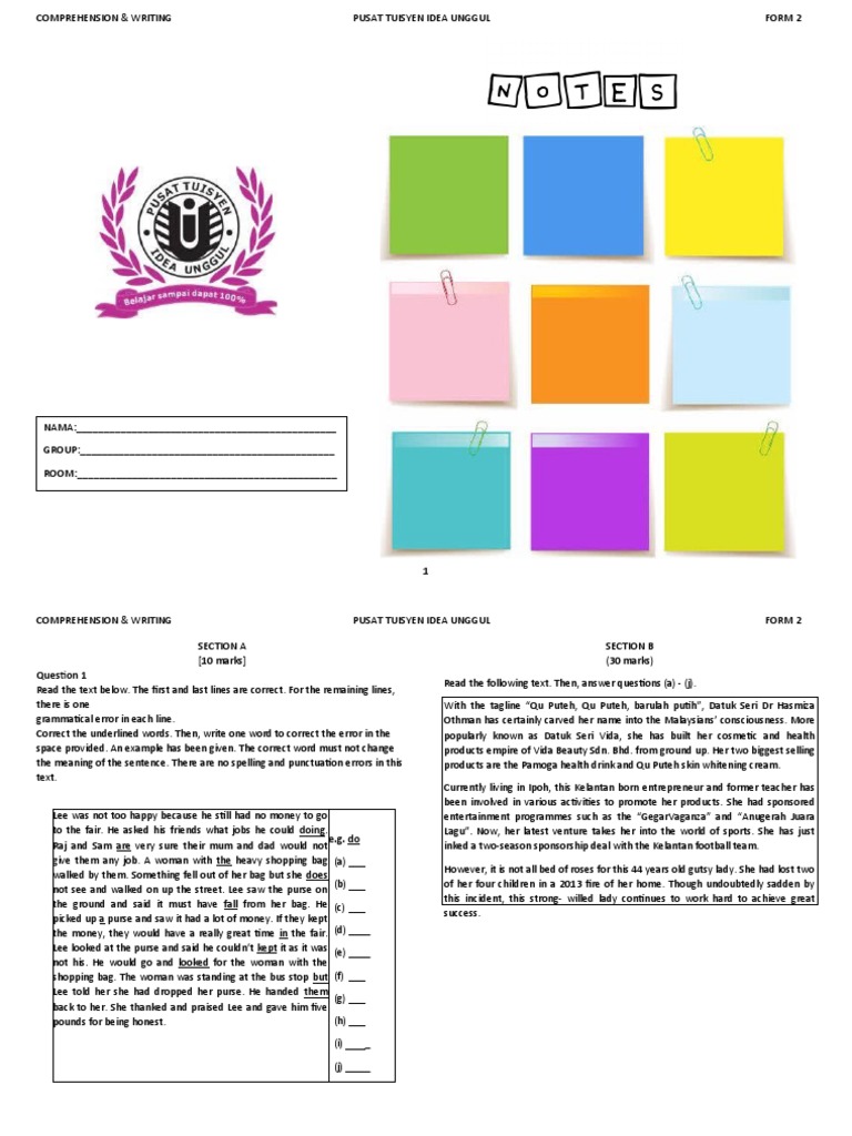 Form 2 Modul 1 Writing Comprehension