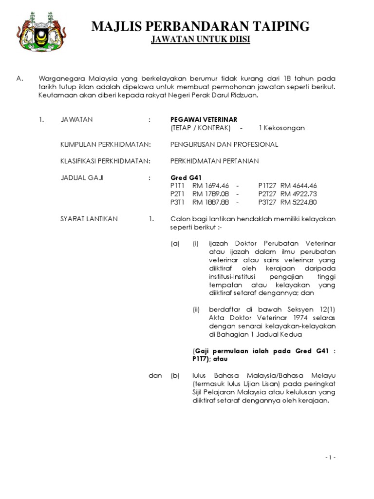 Majlis Perbandaran Taiping Jawatan Untuk Diisi